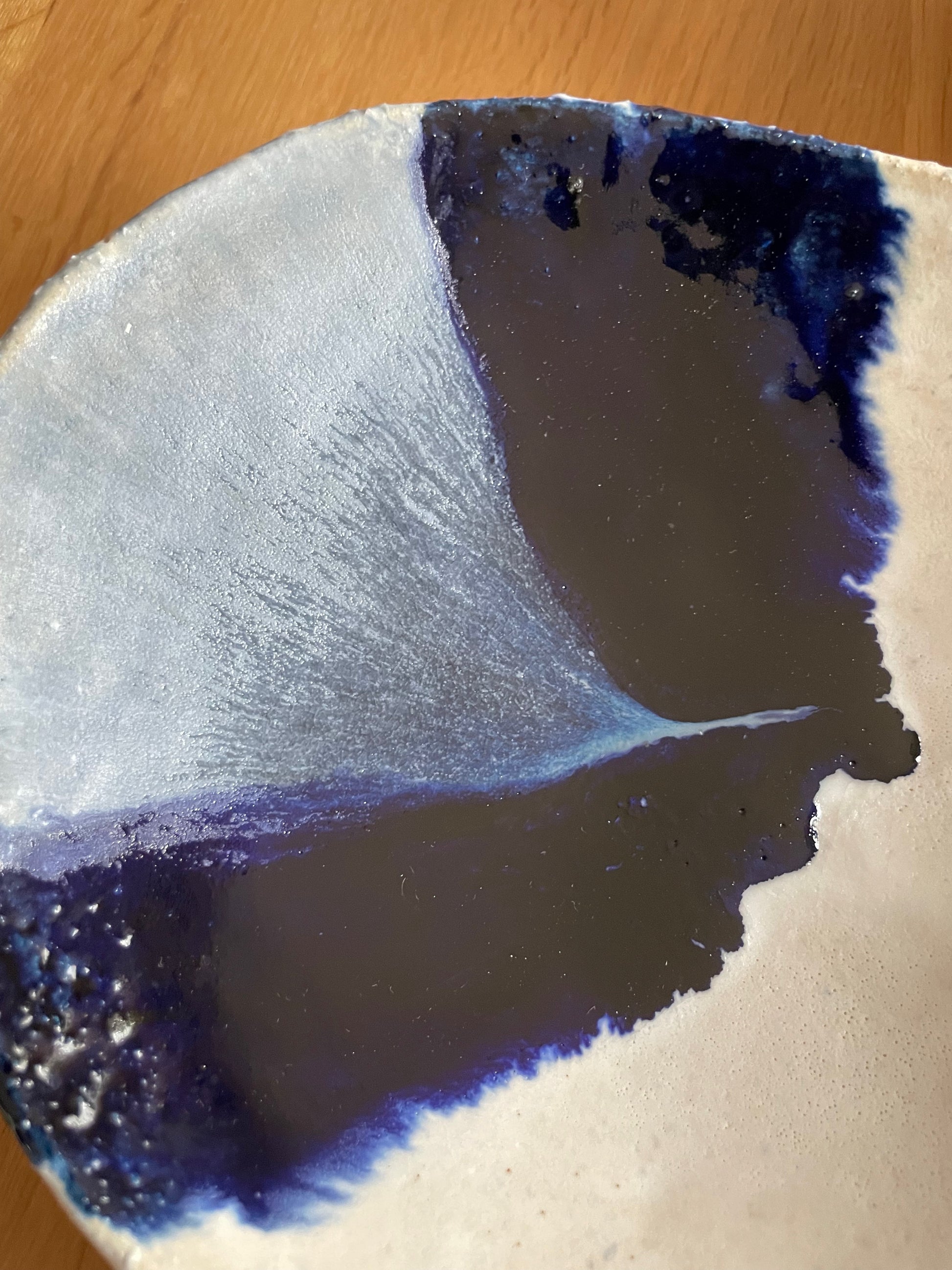 Nuances d'émail blanc , bleu glacier et bleu indigo.