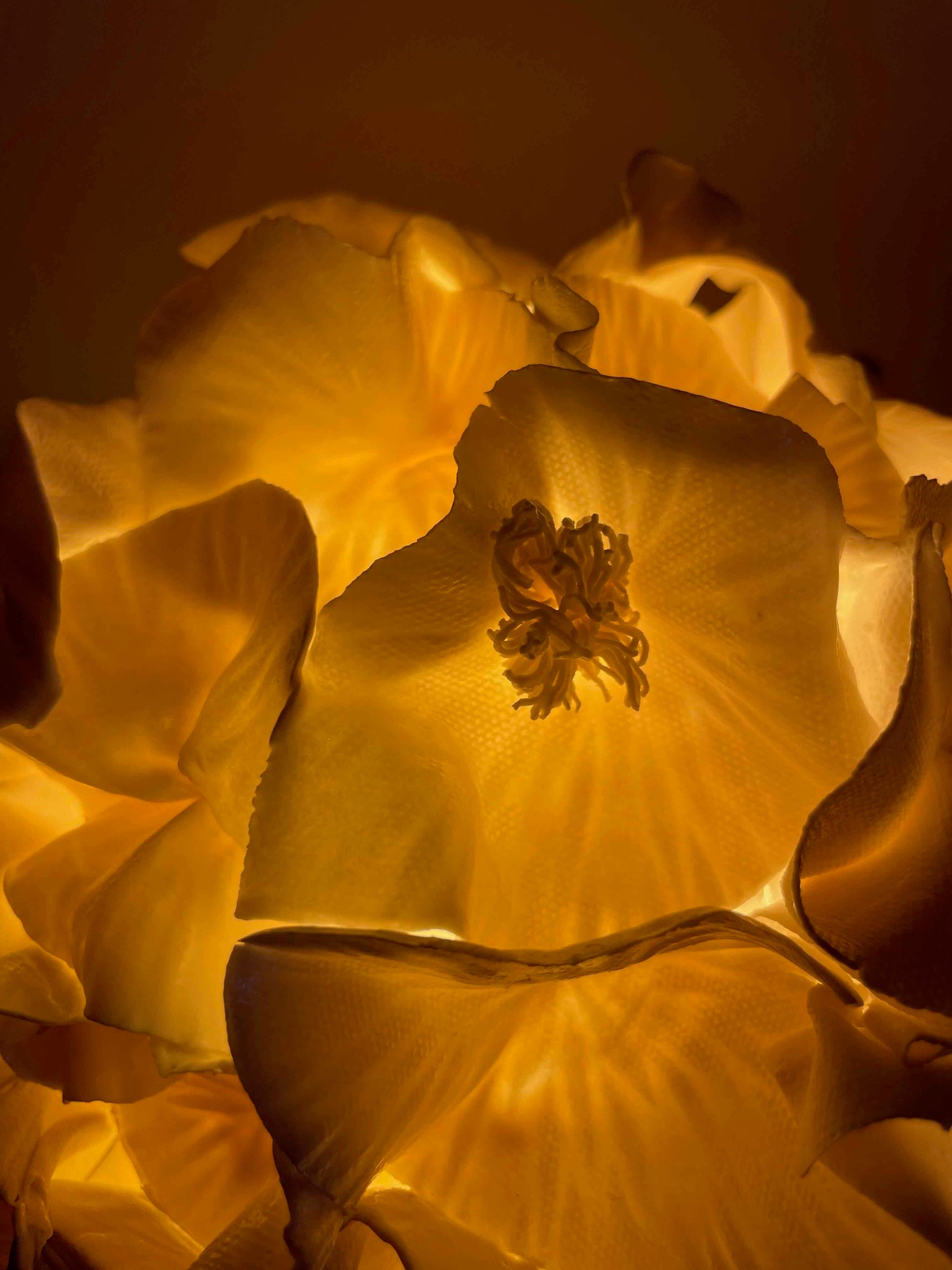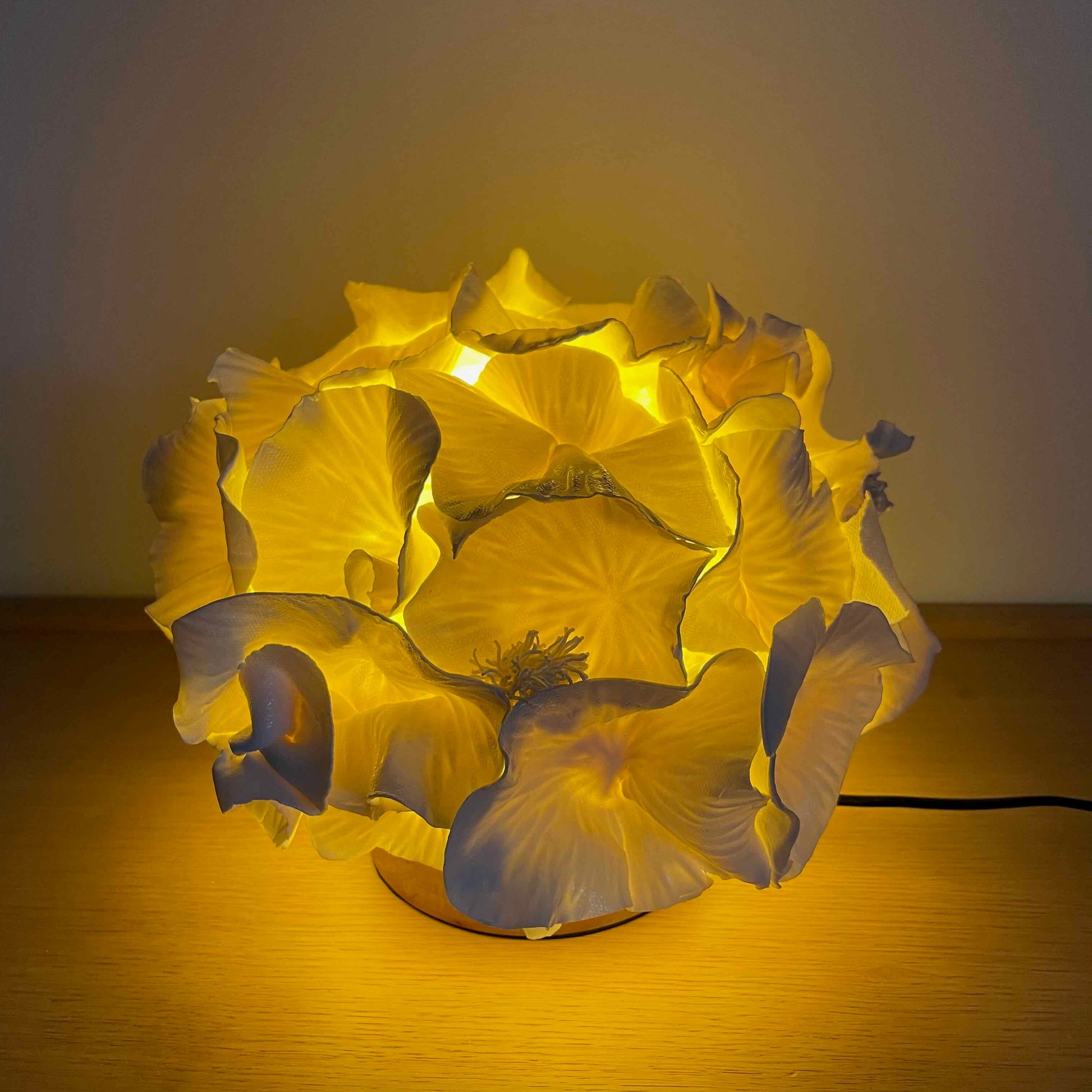 Les motifs floraux jouent avec la transparence de la porcelaine le soir venu et laisse filtrer une douce lumière féerique.